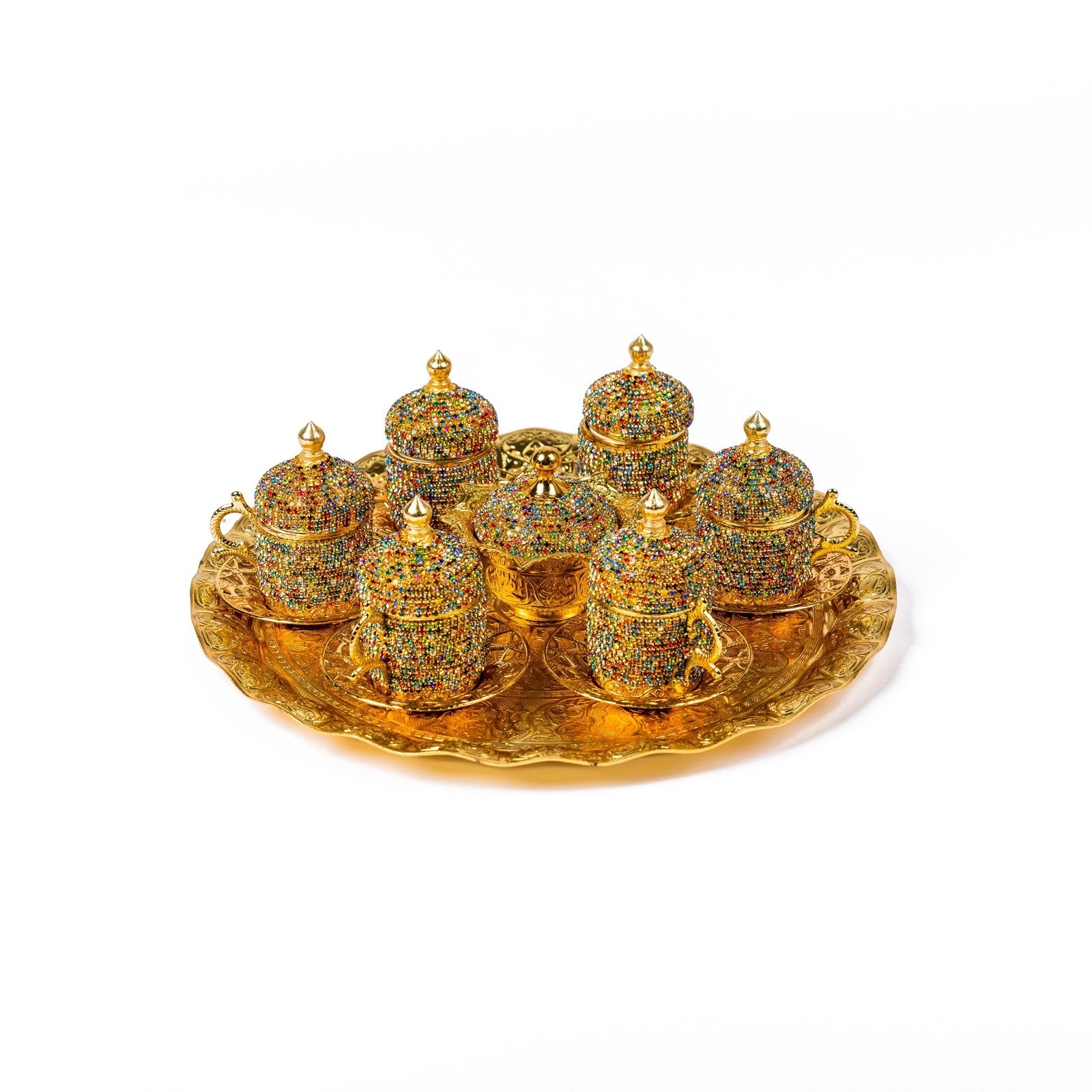 Después, utilizando los tradicionales vasos de té, los cuales suelen estar profusamente embellecidos, se sirve una pequeña cantidad. El té nunca se llena hasta arriba de este modo puede sostenerse el vaso desde el borde sin quemarse.
