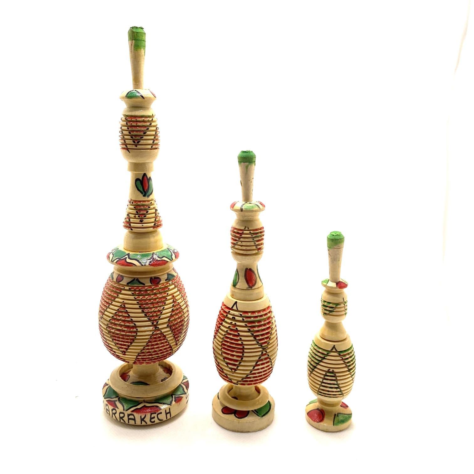 Creado a mano en Egipto, hay quienes lo consideran una verdadera joya. Está delicadamente pintado con oro y colores vibrantes. Su tamaño compacto lo hace perfecto para guardar pequeñas cantidades de perfumes, aromas y esencias concentradas. Para la faceta visual se exhiben como adornos, pero claramente son mucho más que eso.