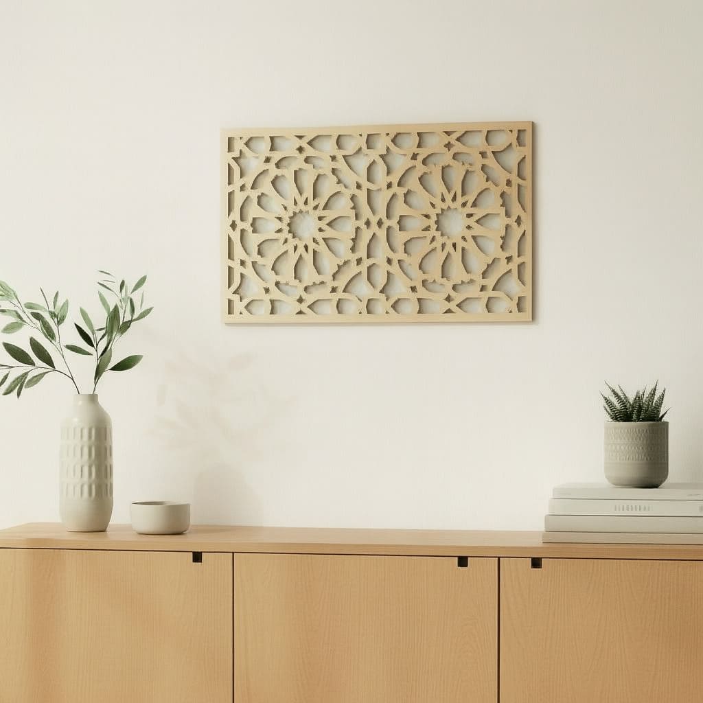 Celosía de madera 8mm en Contrachapado o Laminado de chopo. Múltiples usos, decoración árabe para cabecero de cama, ventanas. Podemos crear infinidad de medidas y diseños, pregunte sin compromiso.