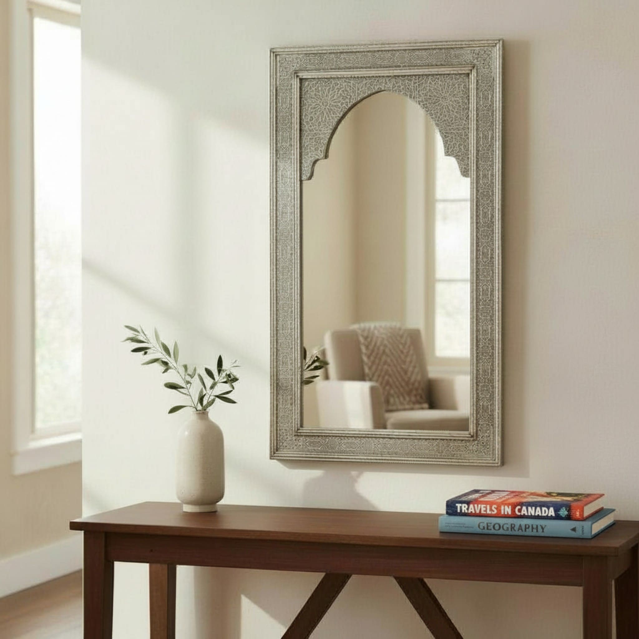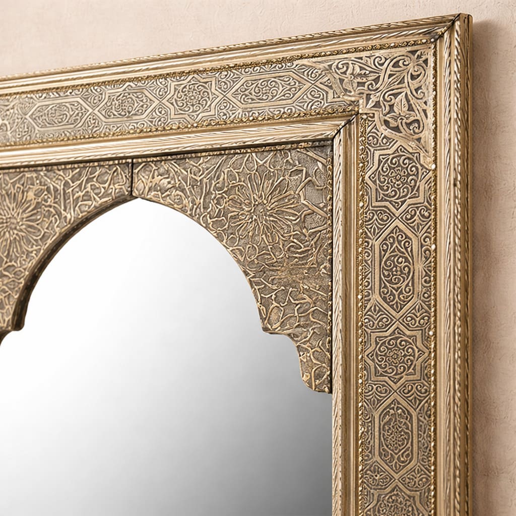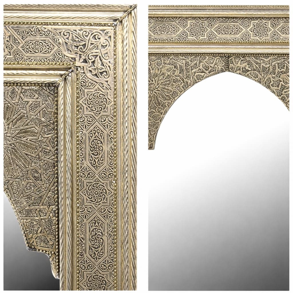 Espejo marroquí de madera con alpaca chapada, arco marroquí al estilo tradicional. Diseño árabe moderno. Decorativo para cuarto de baño, habitaciones, recibidores, pasillos... Modelo Arco Elvira.