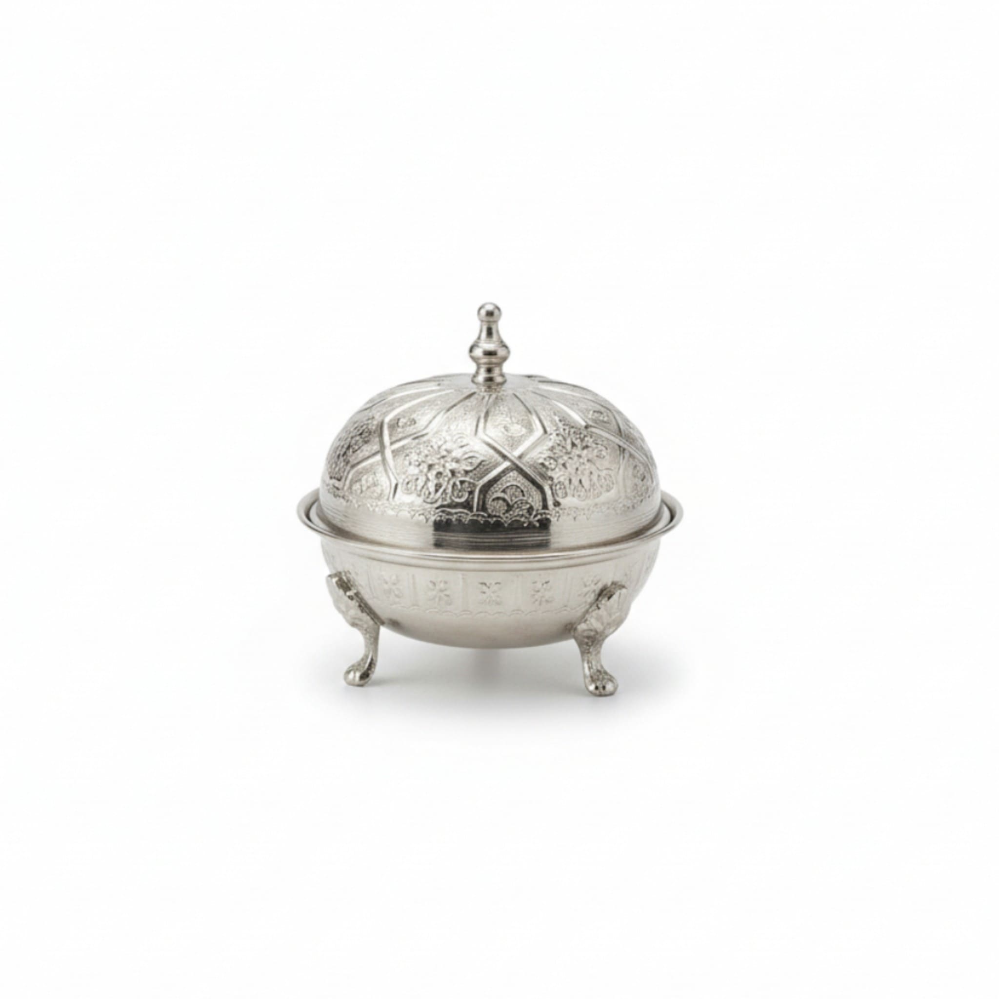 Un azucarero marroquí de alpaca grabada es fundamental en tu juego de té árabe preferido, un compañero necesario para tomar el té moruno. Este azucarero es labrado a mano por los artesanos de Marruecos con dibujos originales y vivos. El azucarero de alpaca es un clásico en cualquier tetería de Marruecos.