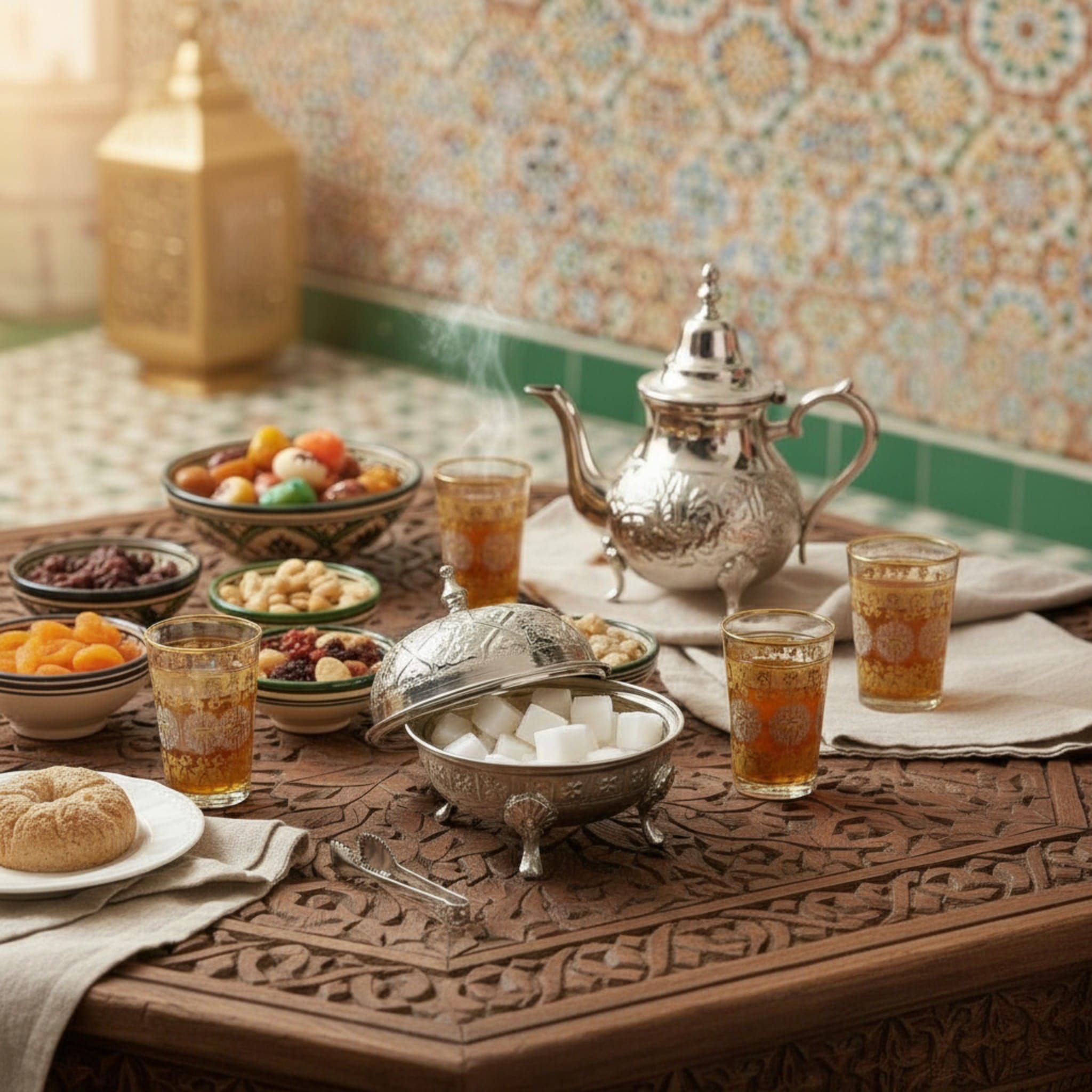 Completa tu juego de té árabe añadiendo una tetera, bandeja y unos vasos marroquíes.