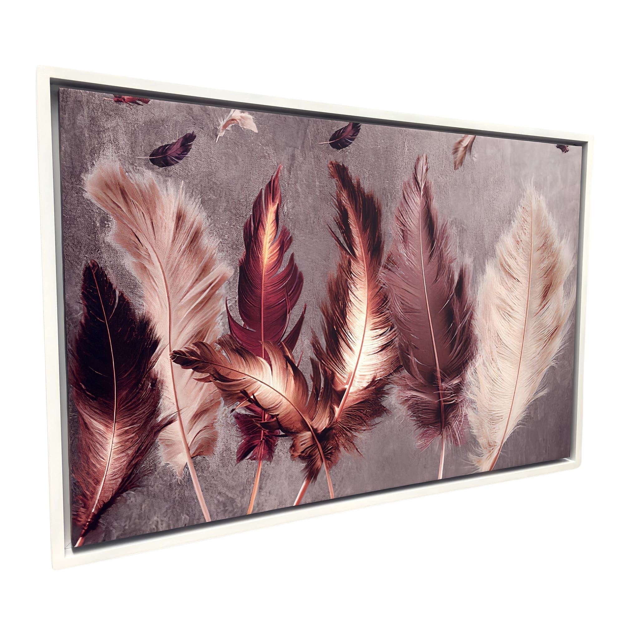 Cuadro de motivos de la naturaleza, plumas de varios colores, de estilo moderno y carácter neutral, en marco de madera maciza de lujo. Concebido para espacios decorativos minimalistas, modernos o de estilo contemporáneo.