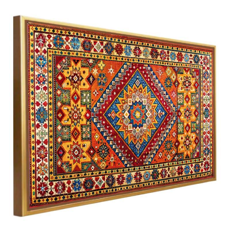 Cuadro de motivo tapiz estilo bereber colorido, moderno y elegante, en marco de madera maciza de lujo.