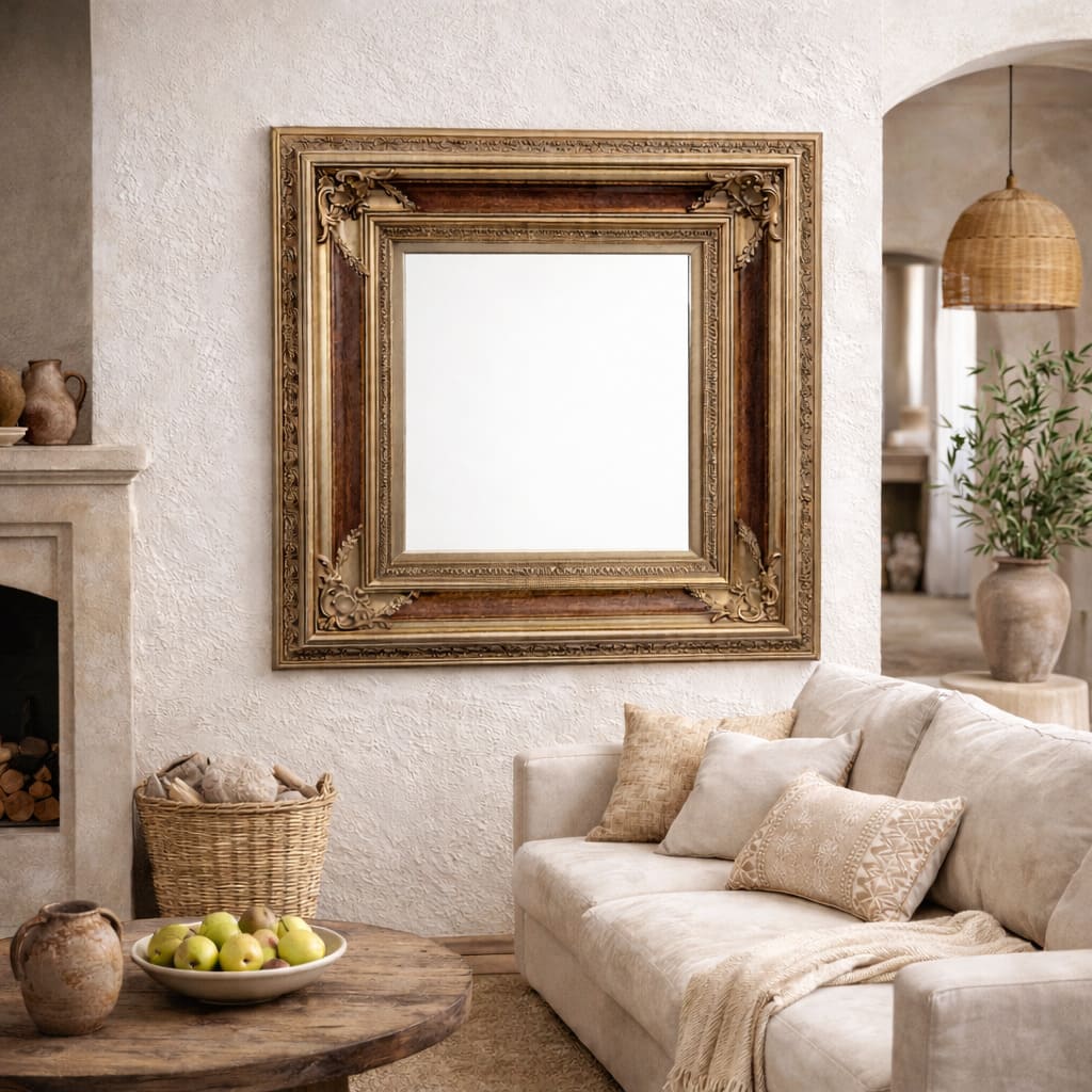 Este tipo de espejo árabe encaja en una línea conservadora de decoración, o en ambientes con mucha madera.