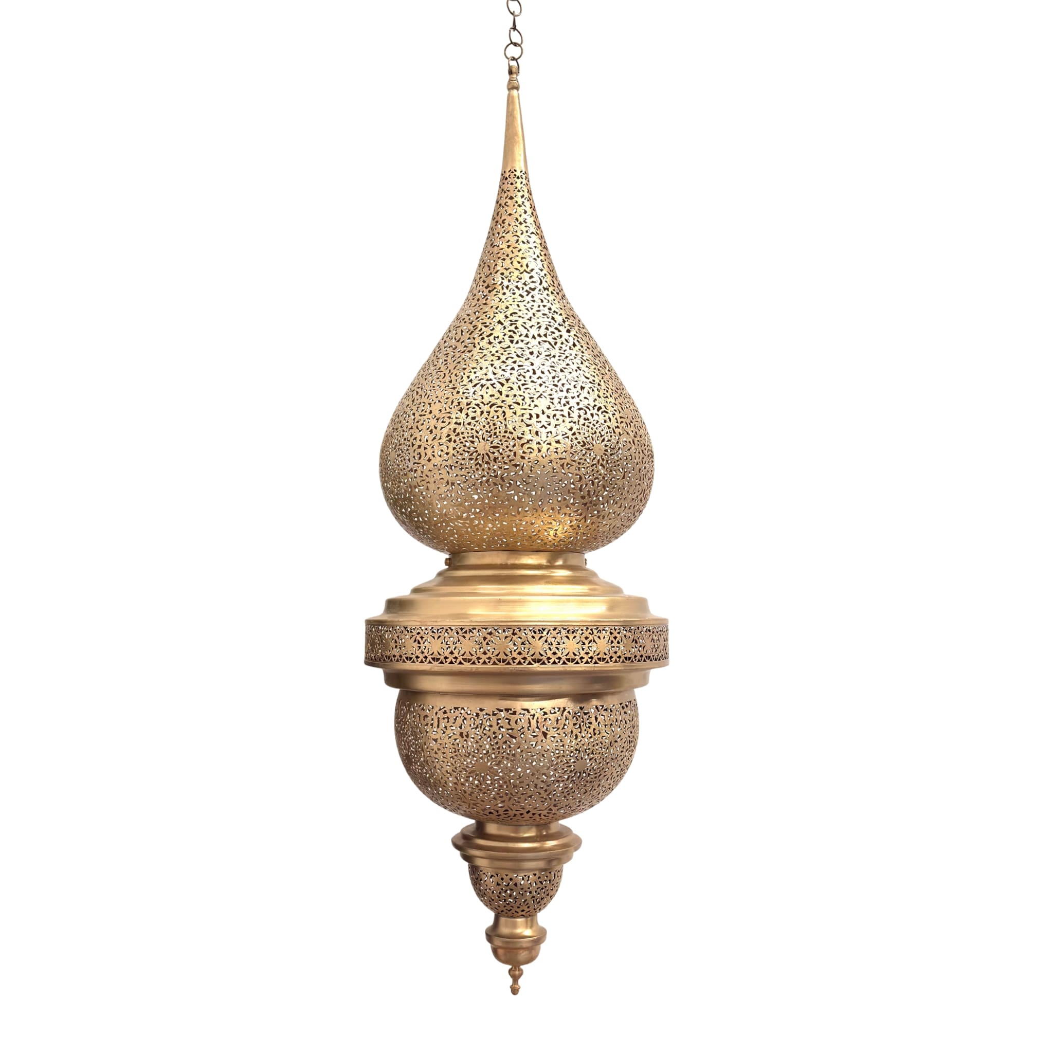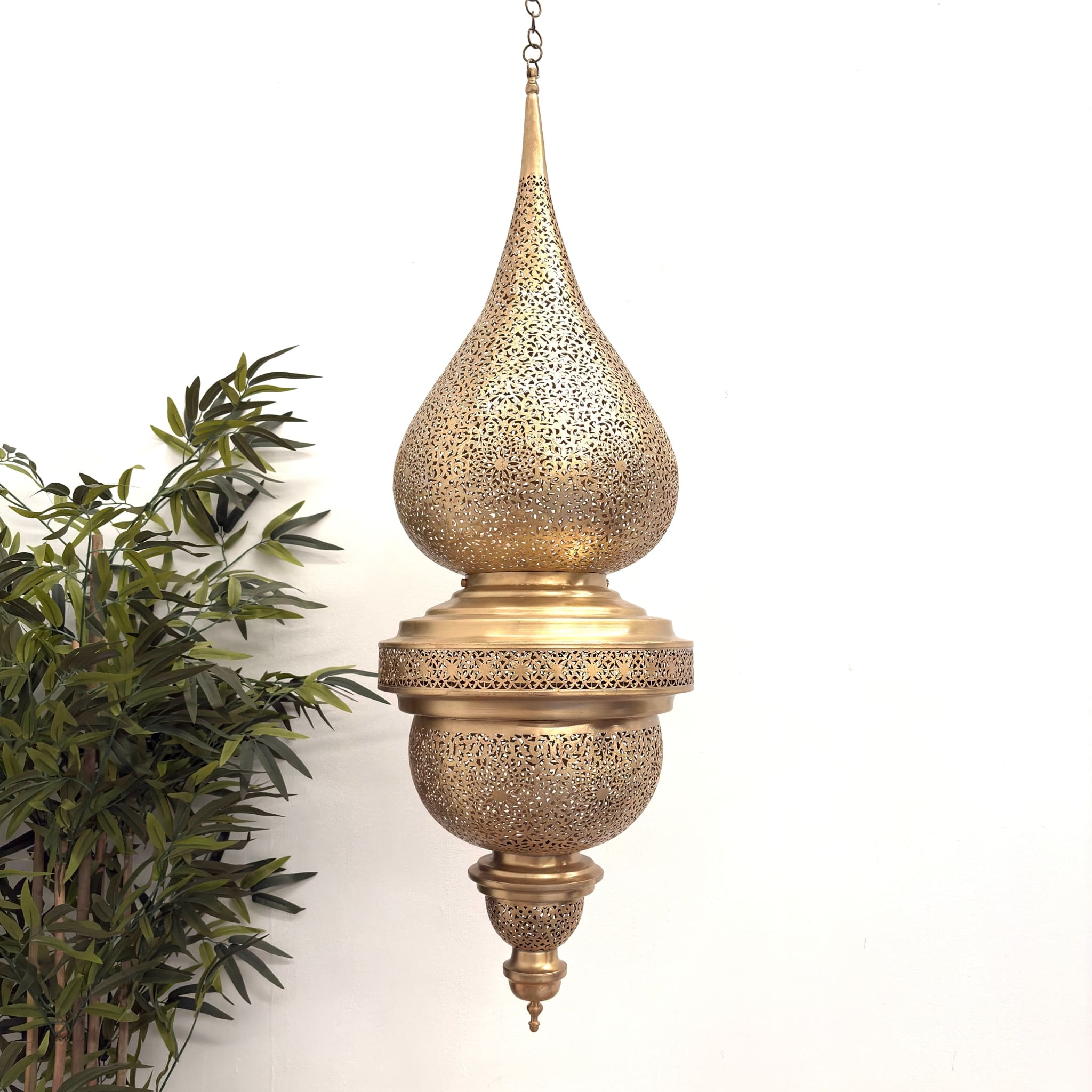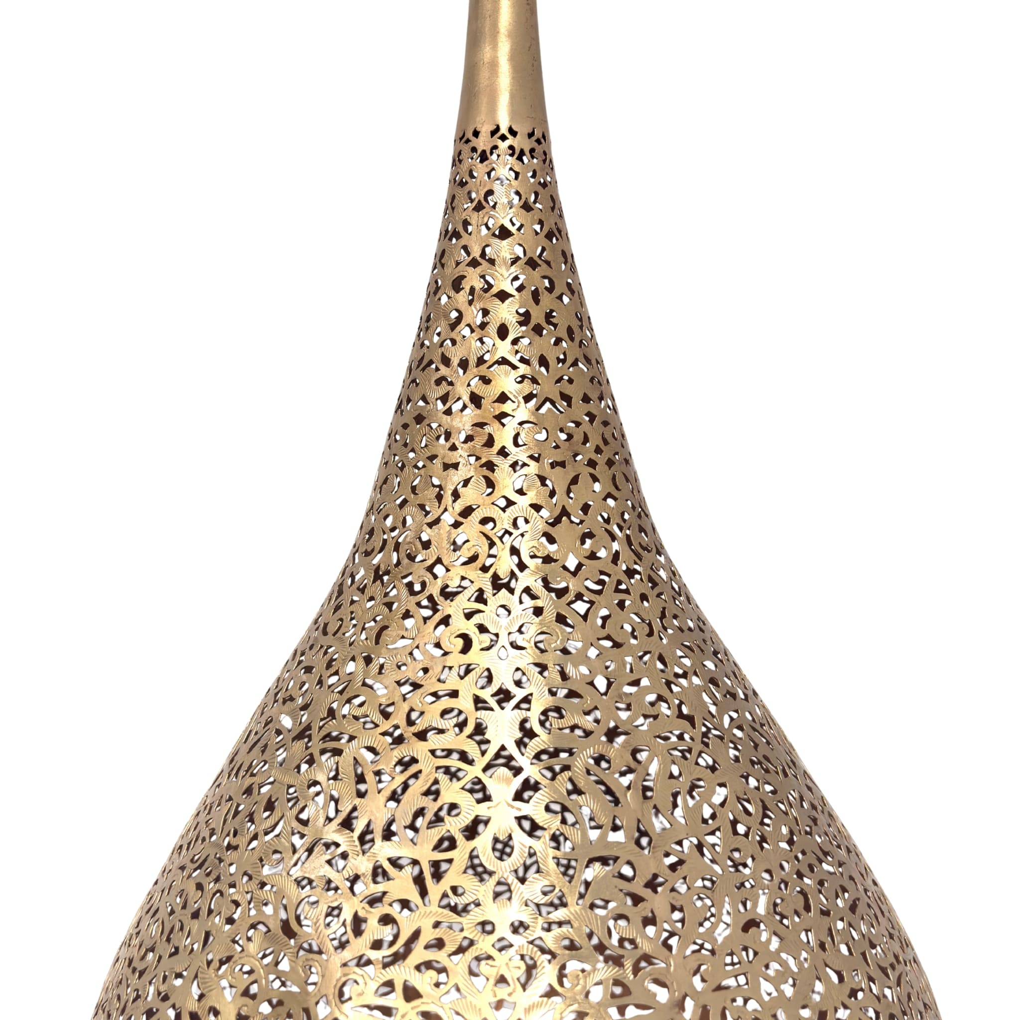 Lámpara árabe de cobre dorado, diseño ''Goutte de Mer''. Pieza especial hecha a mano por los artesanos en el Sur de Marruecos.