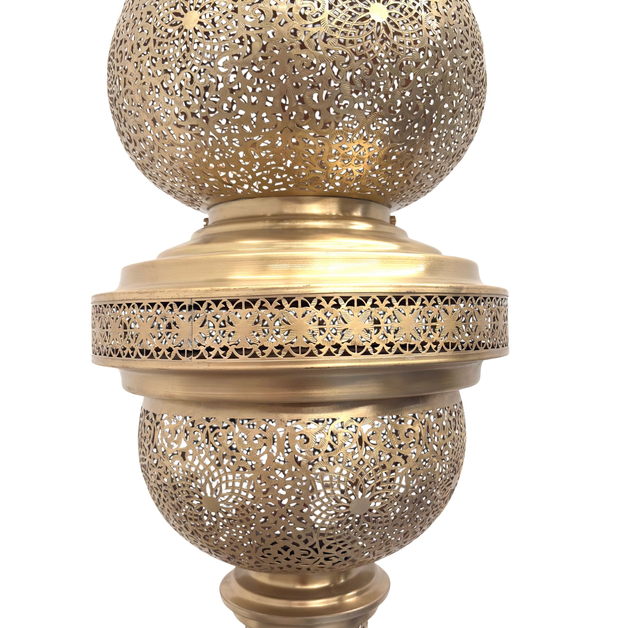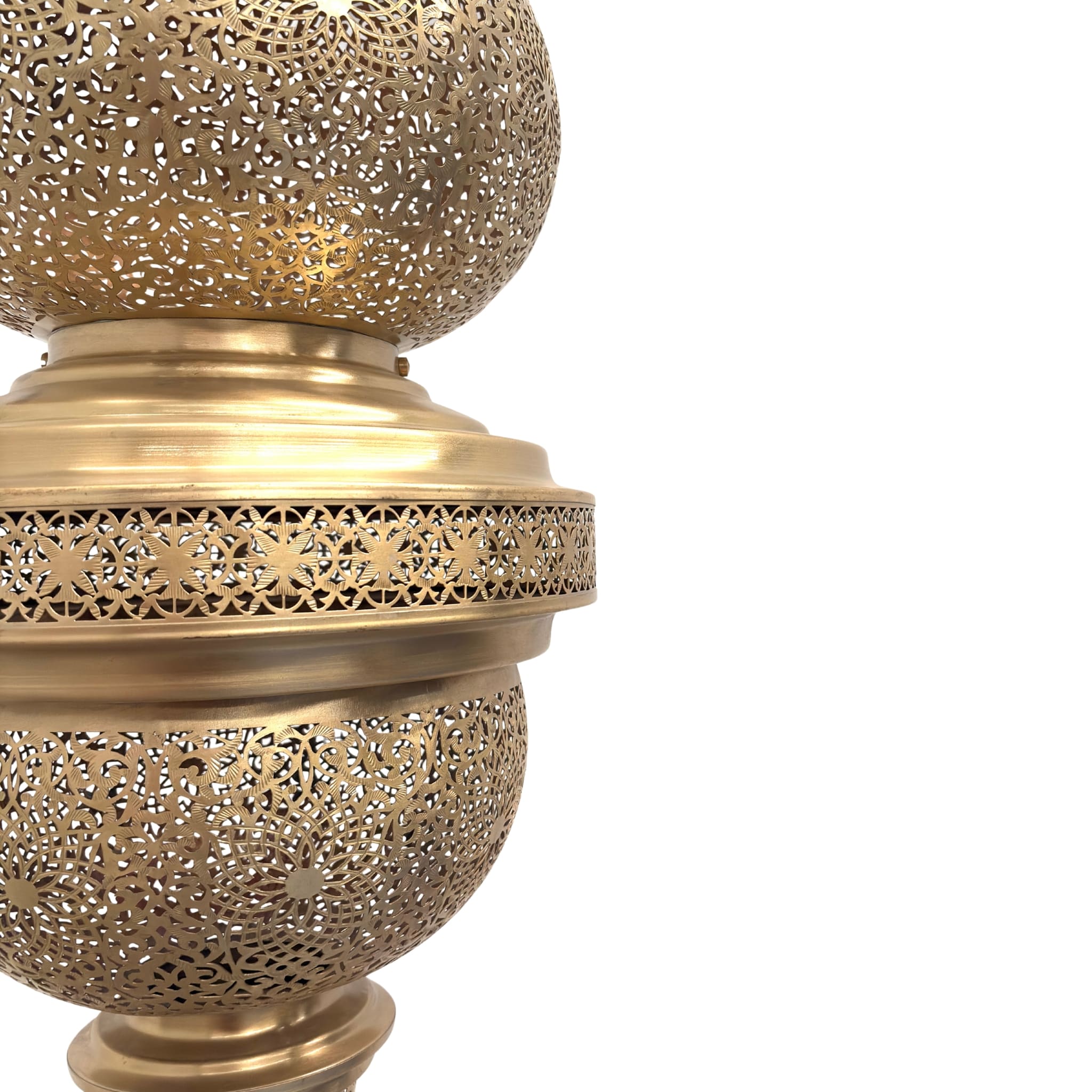 Labrada con minuciosidad, esta lámpara arabesca transforma la luz en un espectáculo de reflejos dinámicos y proyecciones etéreas de luz y sombra.