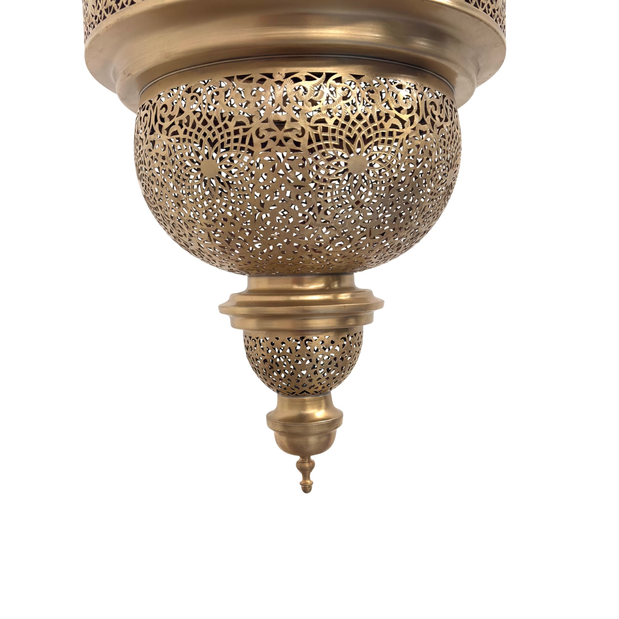 Elaborada en cobre y 100% artesana, esta pieza exclusiva está concebida para espacios de techos altos, que buscan aportar un toque árabe con los patrones Nazaríes de Al-Andalus, actualizados y modernos.