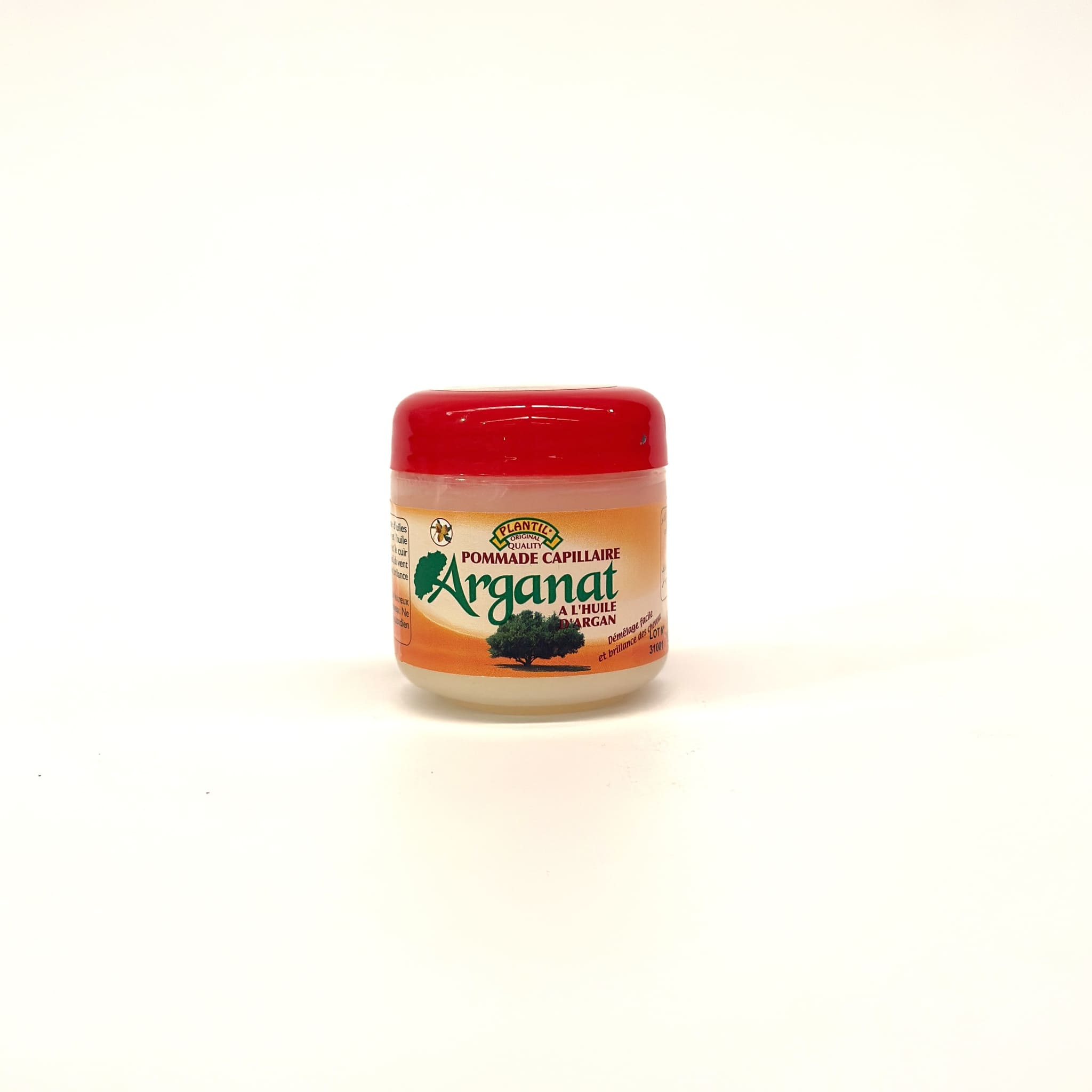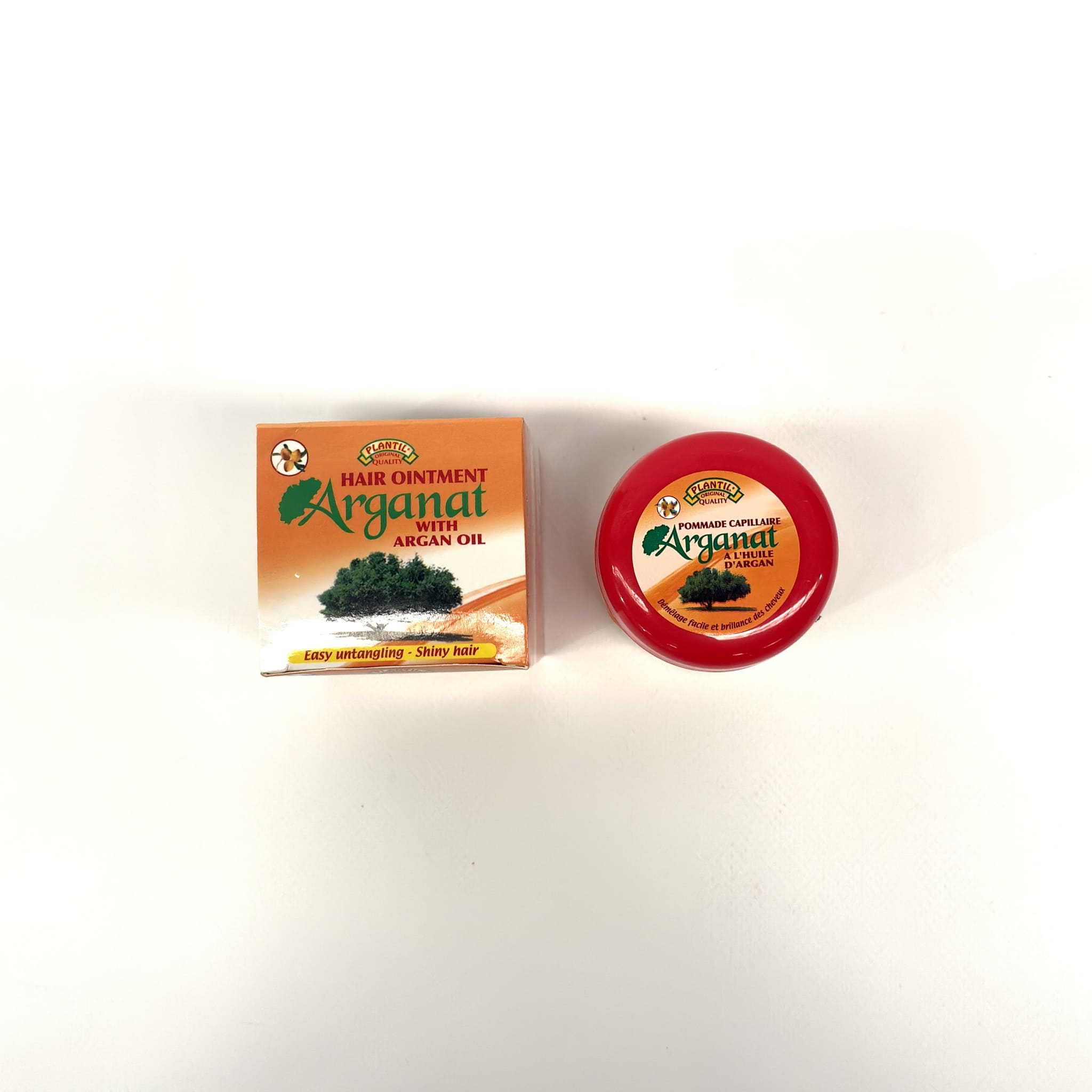 Pomada capilar con aceite de argán, de la casa cosmética ARGANAT. Esta pomada para el cabello está concebida a base de aceites vegetales, incluyendo aceite de argán, con virtudes múltiples para los cabellos y el cuero cabelludo. Protege de los efectos deshidratantes del sol, del viento y del mar. Desenmaraña el pelo, facilita el peinado y le da un aspecto brillante a los cabellos. Es recomendado para todo tipo de cabellos.