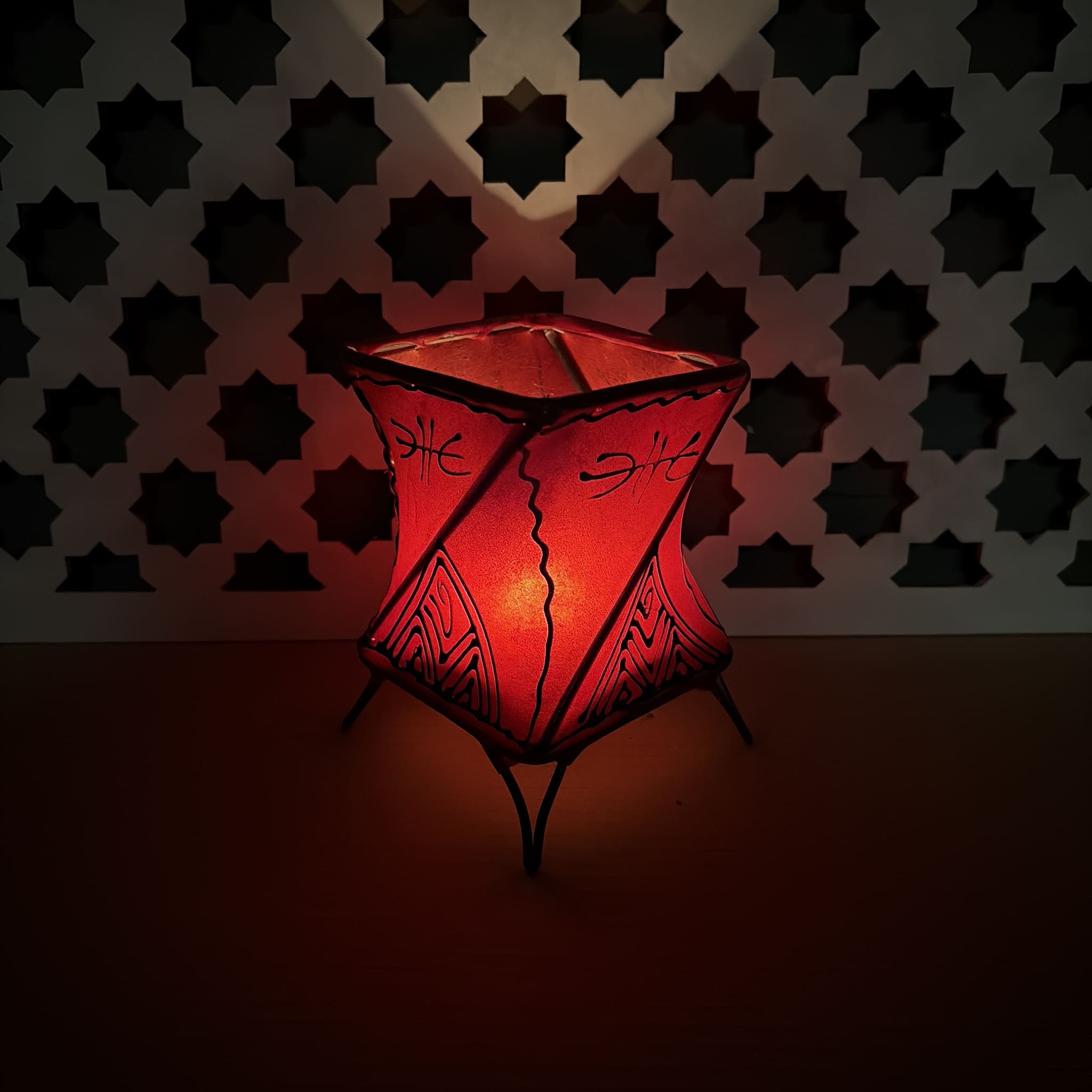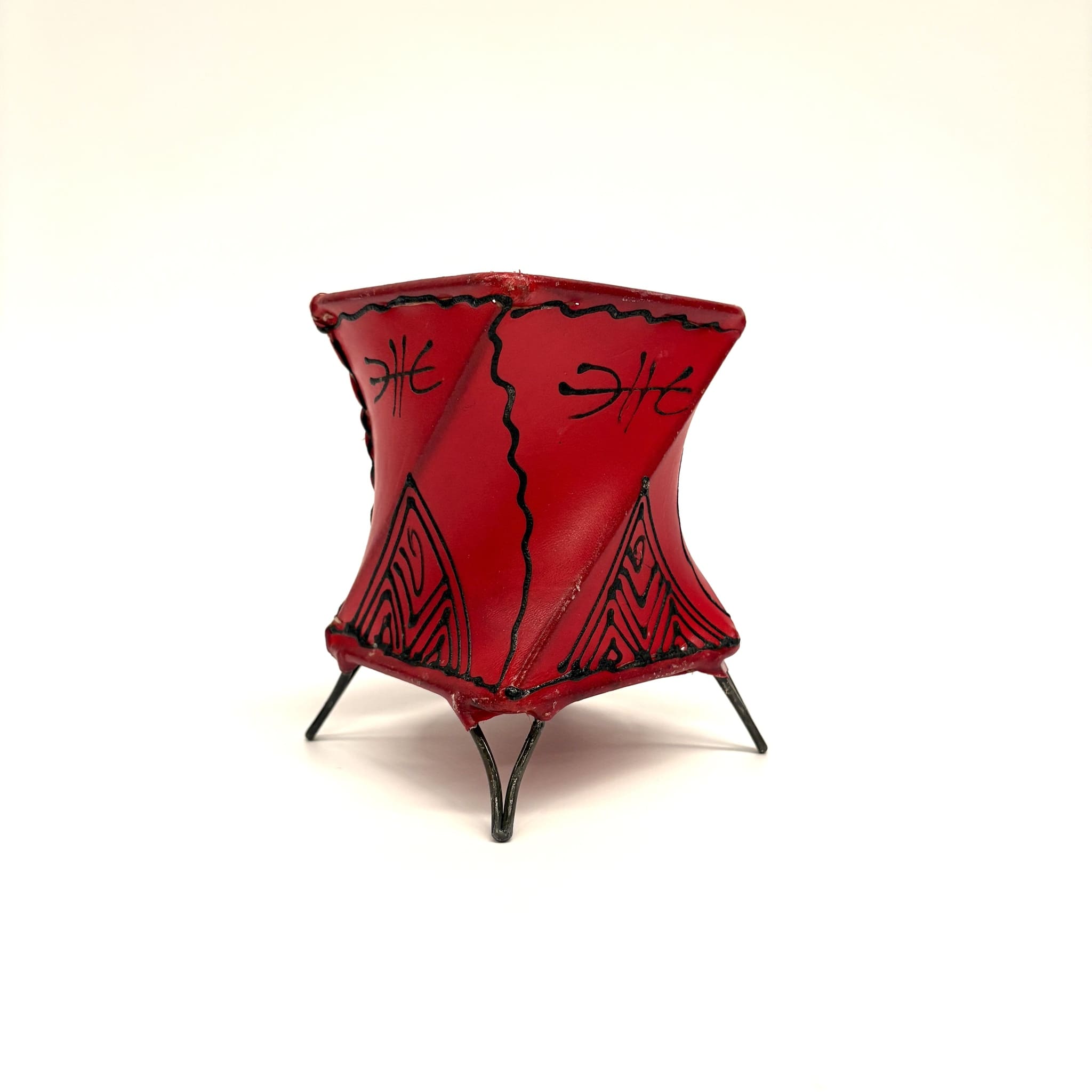 Encantador portavelas moruno de piel en color rojo, elaborado 100% de manera artesana en Marruecos por nuestros artesanos. Añade el toque marroquí a tus estancias con una iluminación agradable y mágica.
